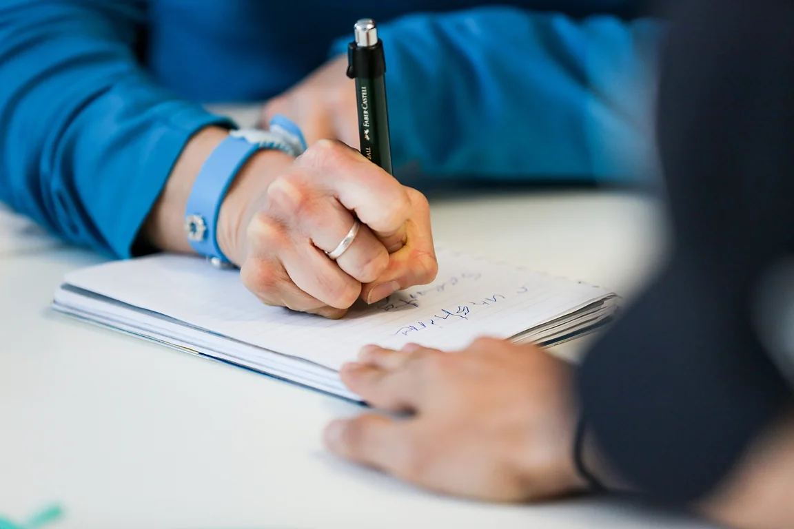 The team created a magnetic bracelet with a metal sheet which can be slotted into a notebook.
